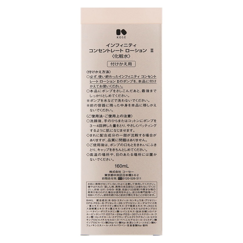 コーセー インフィニティ コンセントレート ローションII 化粧水 160ml 付けかえ用