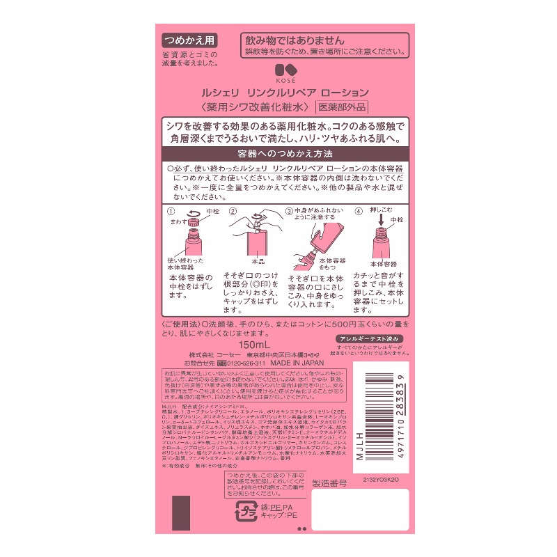 コクのある感触でうるおい、ハリ・ツヤあふれる肌に導き、シワを改善する薬用化粧水のつめかえ用