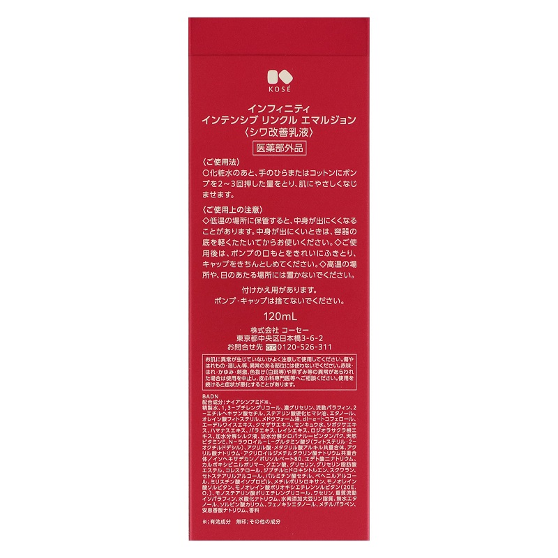 コーセー インフィニティ インテンシブ リンクルエマルジョン シワ改善乳液 120ml