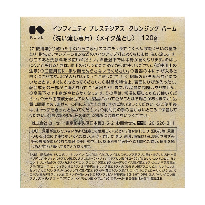 コーセー インフィニティ プレステジアス クレンジング バーム 洗い流し専用メイク落とし 120g