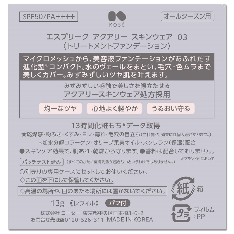 コーセー エスプリーク アクアリースキンウェア  003