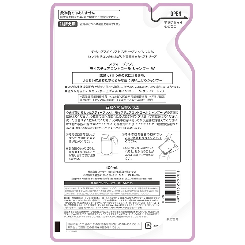 コーセー スティーブンノル モイスチュアコントロールシャンプーW(ツメカエ)