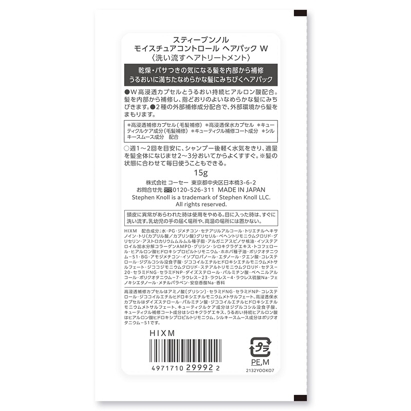 コーセー スティーブンノル モイスチュアコントロールヘアパックWトライアル