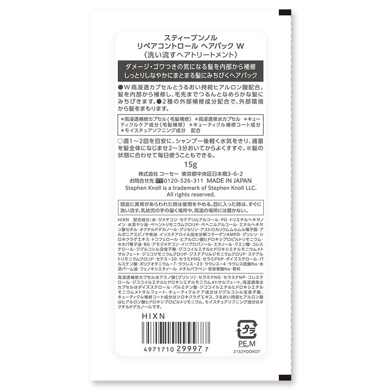 コーセー スティーブンノル リペアコントロールヘアパックWトライアル