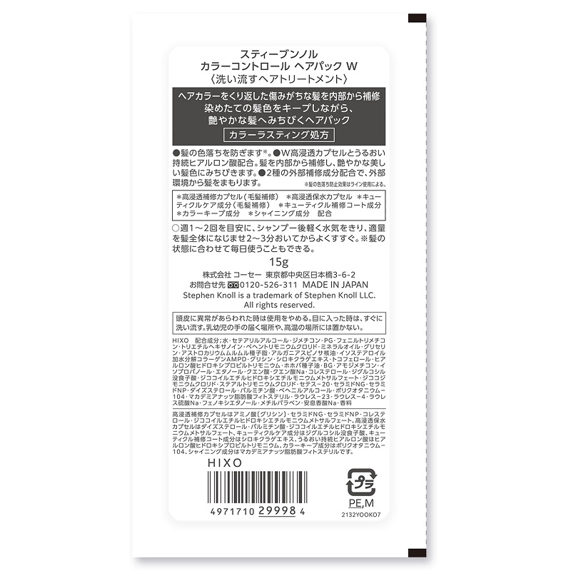 コーセー スティーブンノル カラーコントロールヘアパックWトライアル