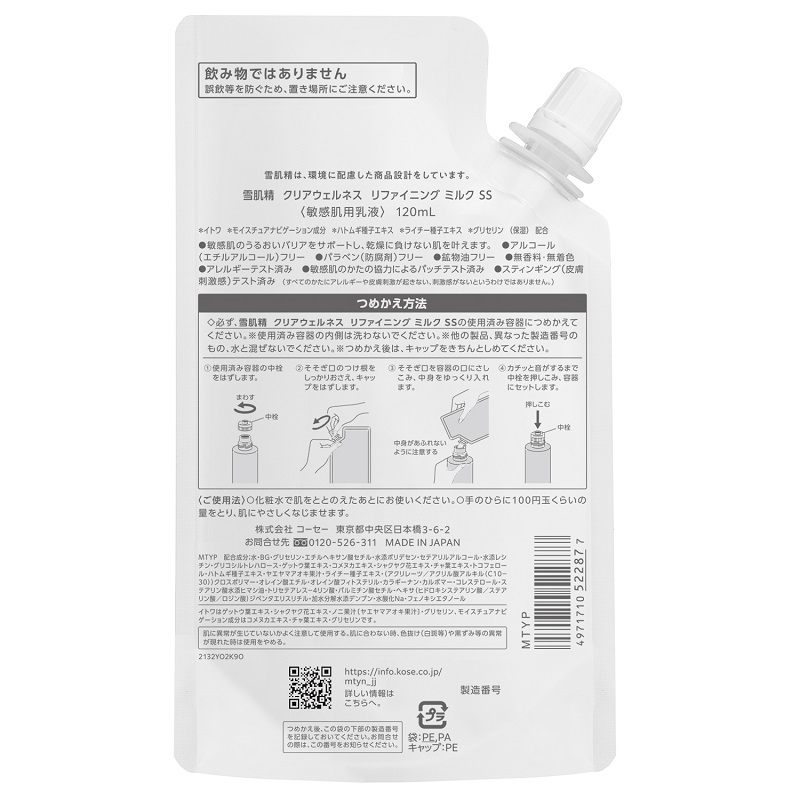コーセー 雪肌精 クリアウェルネス リファイニングミルクSS ツメカエヨウ