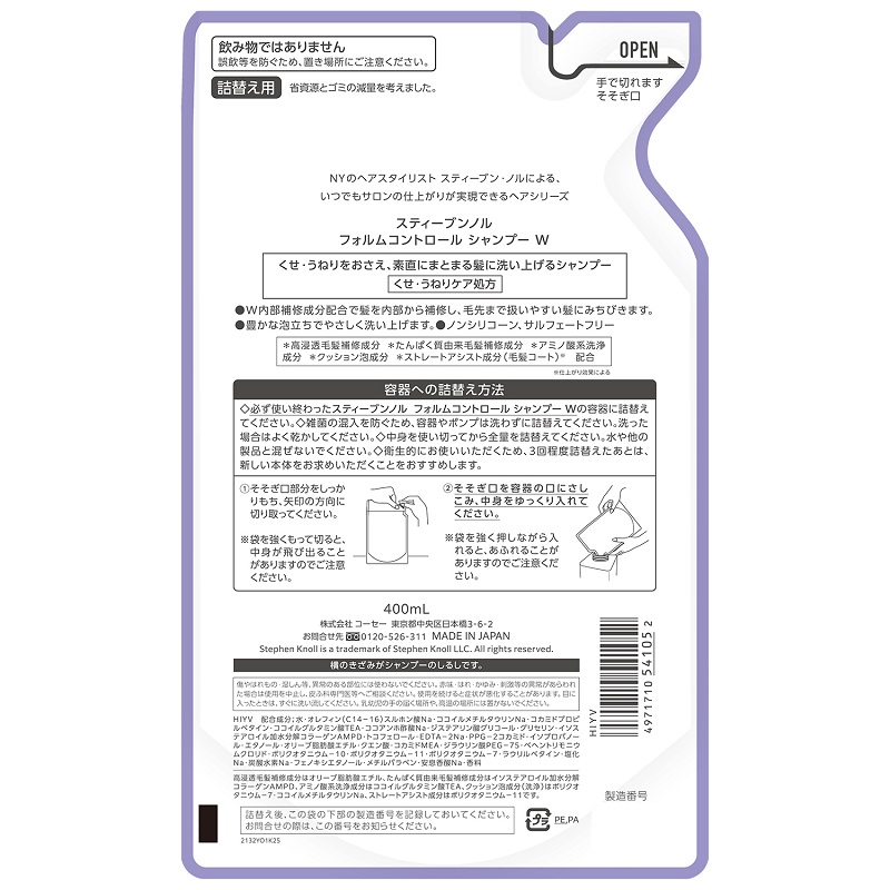 コーセー スティーブンノル フォルムコントロールシャンプーW(ツメカエ)