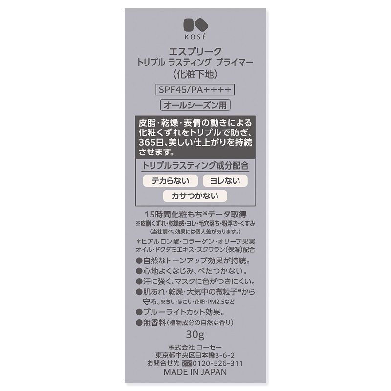テカリ・カサつき・ヨレに強く、メイクを徹底的にくずさない。肌負担感のない心地よいタッチの化粧下地。