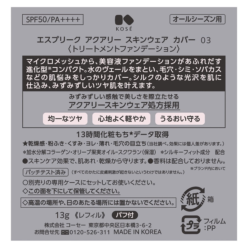 コーセー エスプリーク アクアリースキンウェアカバー 003