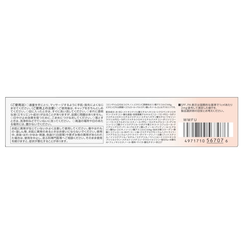 水、BG、メトキシケイヒ酸エチルヘキシル、シクロペンタシロキサン、ジメチコン、酸化亜鉛、安息香酸アルキル(C12-15)