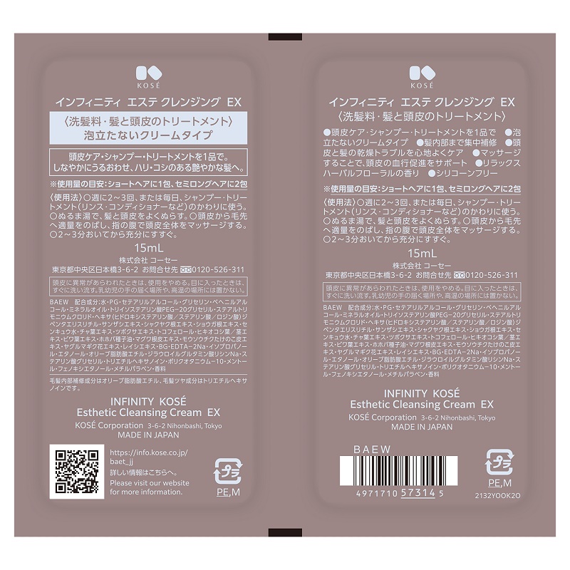 「頭皮ケア」×「シャンプー」×「トリートメント」。1品で完了。エステクレンジングEXの使い切りパウチ仕様のトライアル