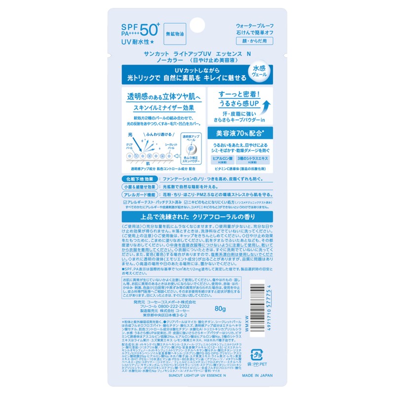 ●UVカットしながら、光トリックで自然に素肌をキレイに魅せるノーカラータイプの日やけ止め美容液。