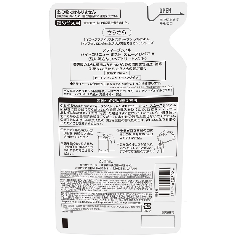 コーセー スティーブンノル ハイドロリニューミストスムースリペアA (ツメカエヨウ)