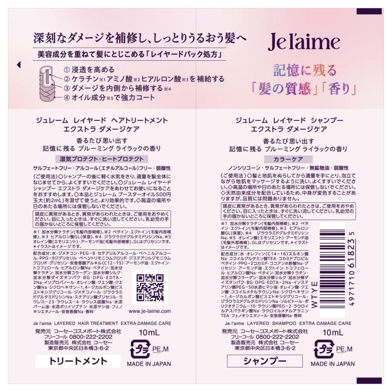 ン、トコフェロール、ヒアルロン酸Na、ベタイン、加水分解ケラチン、加水分解コラーゲン、加水分解シルク、加水分解ダイズタン