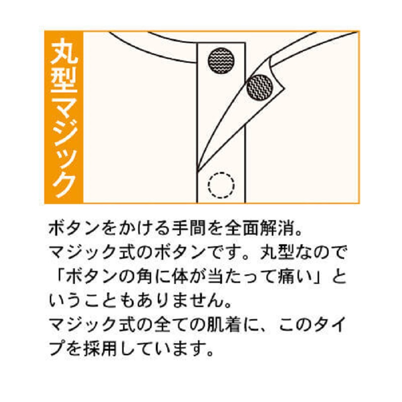 ボタンをかける手間を全面解消した、丸型マジック式ボタン肌着。