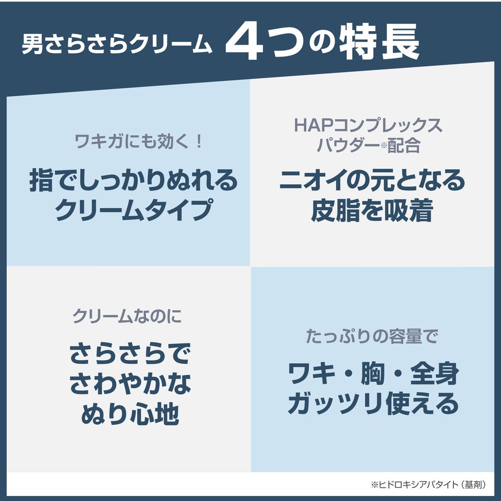 - しっかりぬれてワキガにも効くクリームタイプの制汗剤