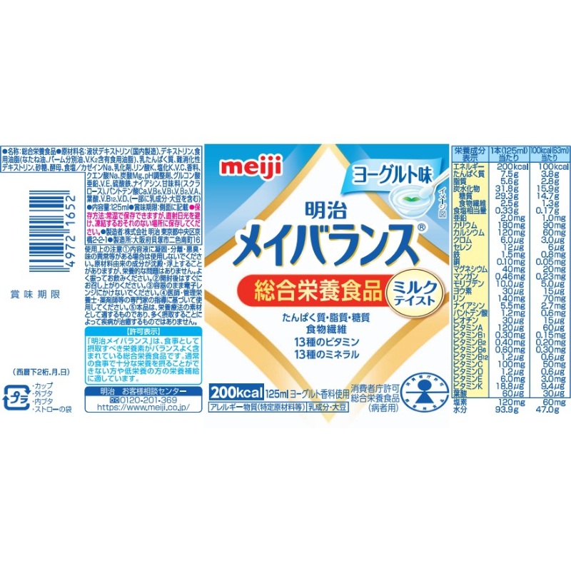 1本125mlで200kcalと少量で高エネルギー設計。たんぱく質・11種類のビタミン・10種類のミネラルなど、不足しが