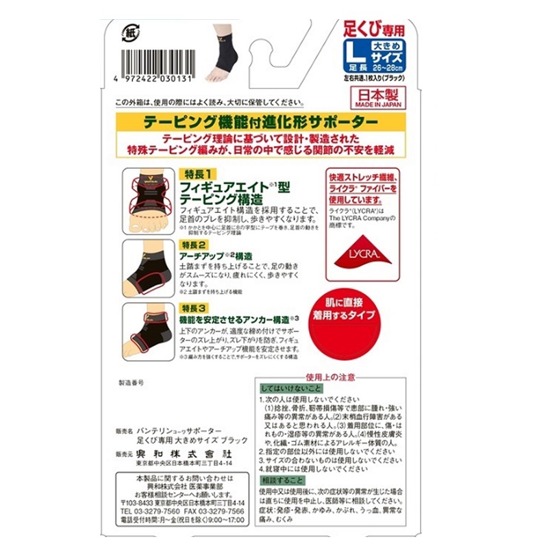 日常生活をサポートするための「生活テーピング」の理論の中から、各部位にもっとも効果的なテーピング方法を採用しました。
