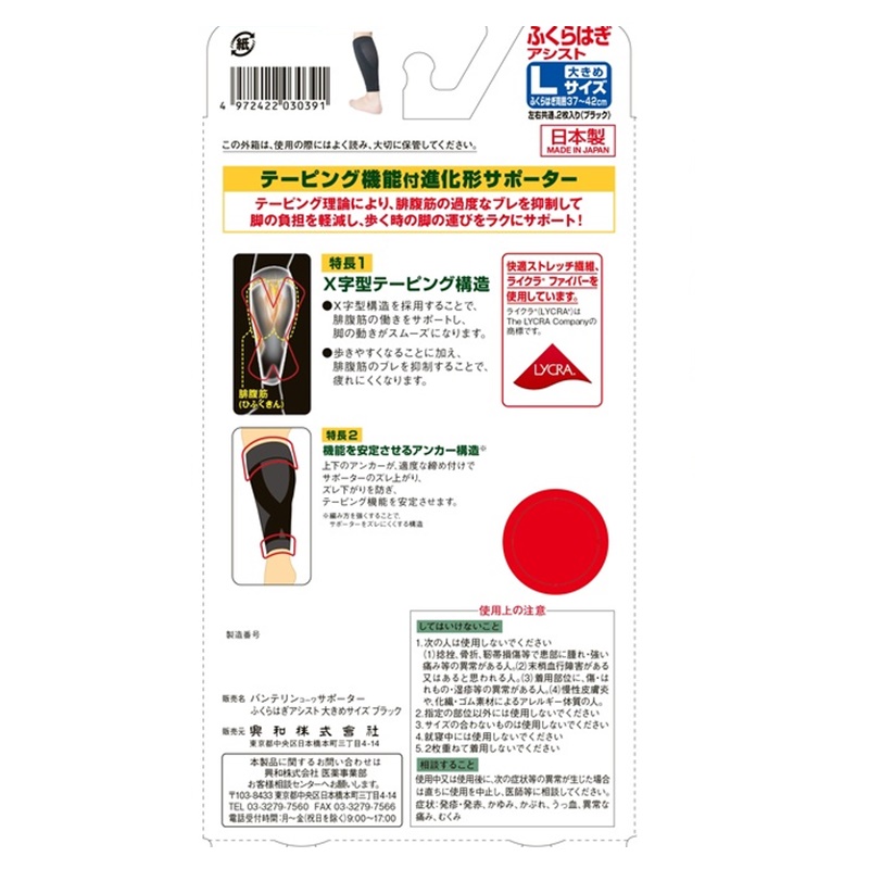 ふくらはぎの主要な筋肉である腓腹筋(ひふくきん)の働きに着目し、「生活テーピング理論」に基づいた構造設計を行いました。