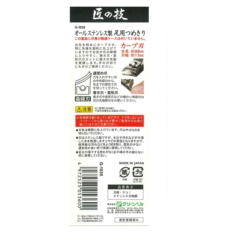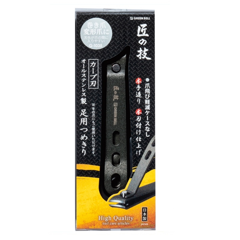 爪の隙間に入りやすいように刃先を斜めにカーブさせていますので、巻き爪や変形爪に最適です。