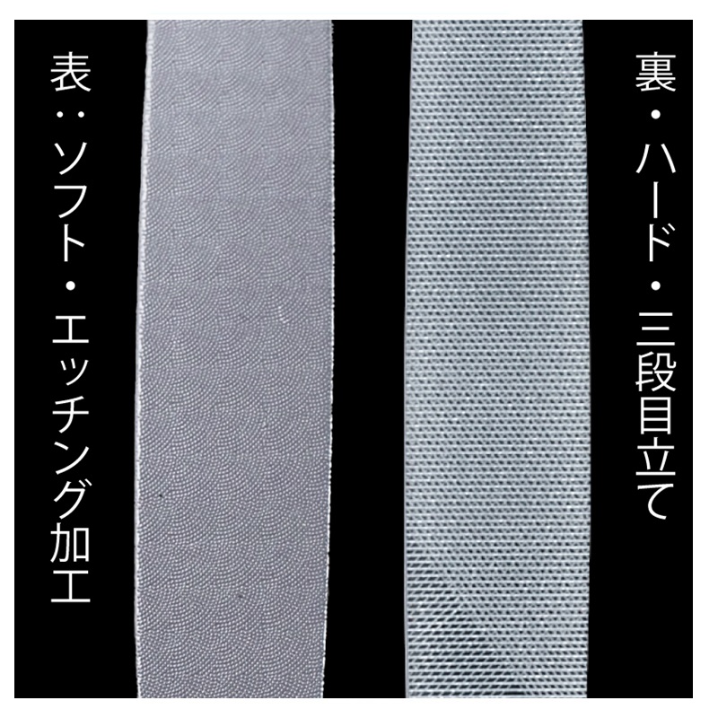 三段目立てのハードタイプとエッチング面のソフトタイプのツーウェイタイプ。
