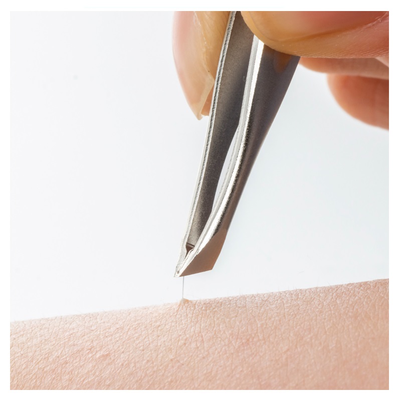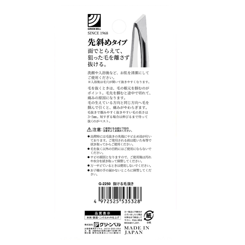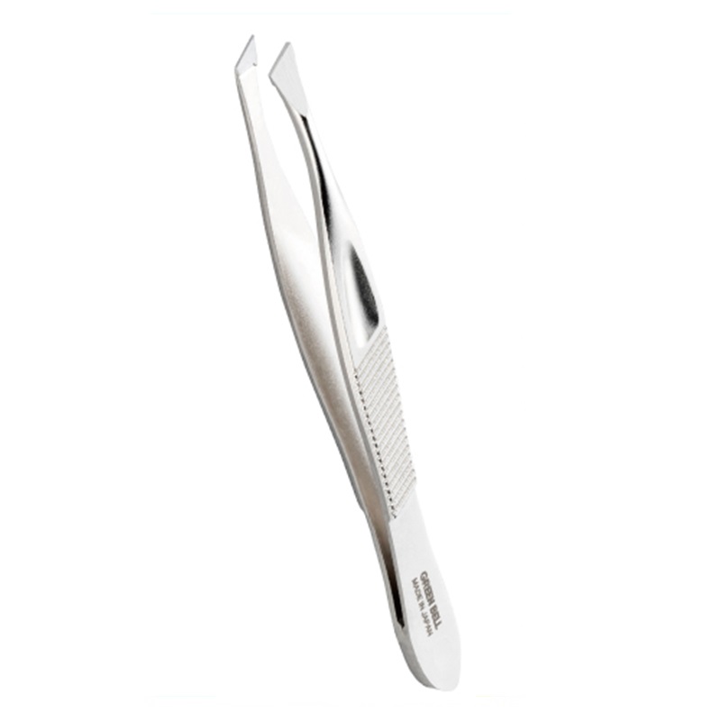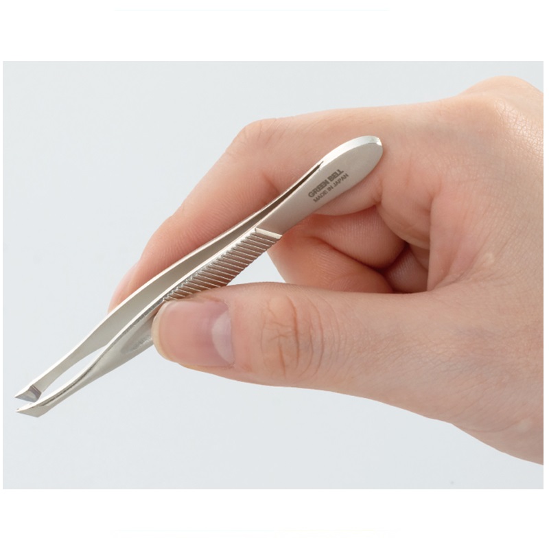 つかんだ毛を逃がさない、面でとらえる先斜め毛抜き。
