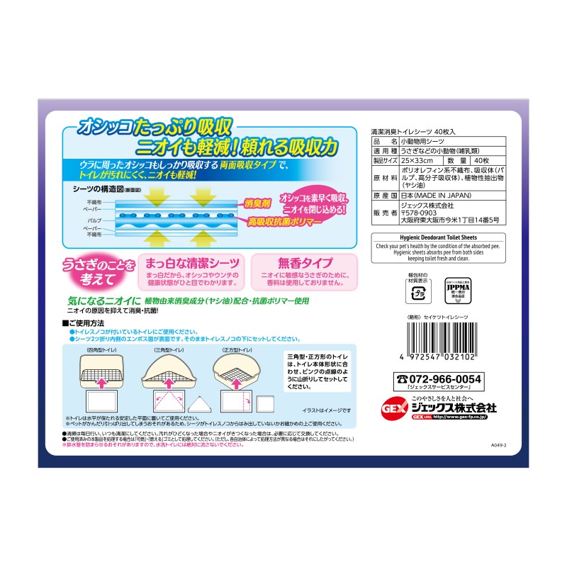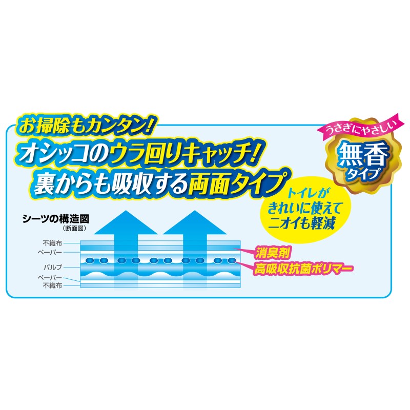 ・四角トイレにぴったりな両面吸収のトイレシーツです。