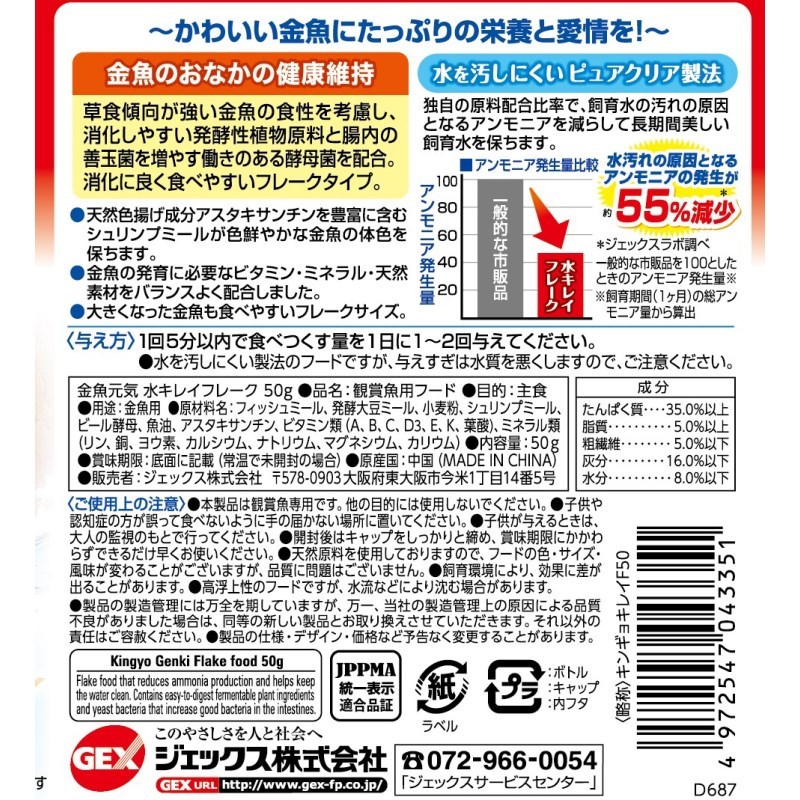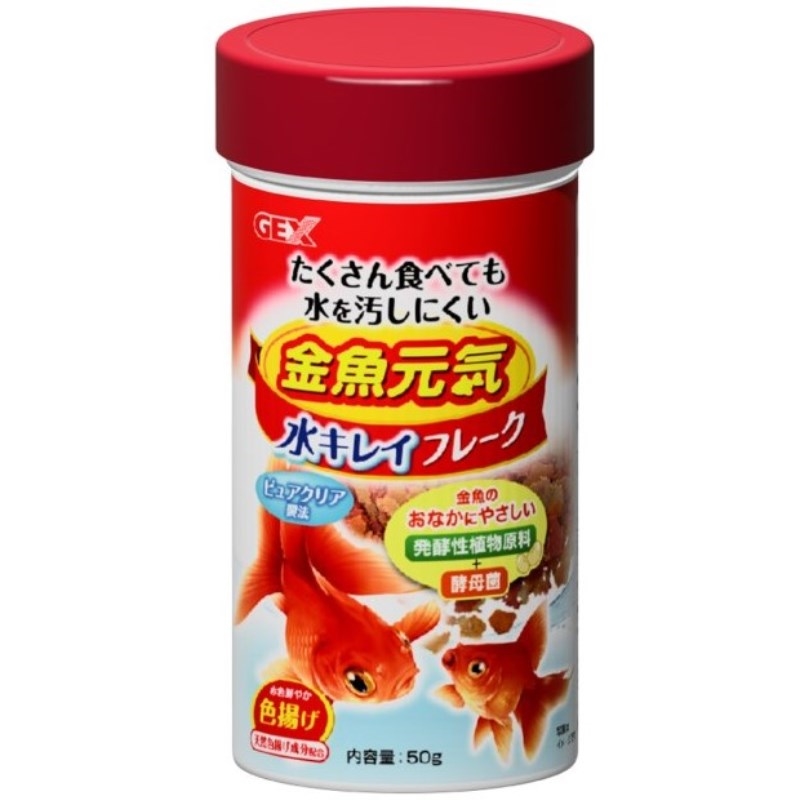 ・草食傾向が強い金魚の食性を配慮し、消化しやすい発酵性植物原料と腸内の善玉菌を増やす働きのある酵母菌を配合。
