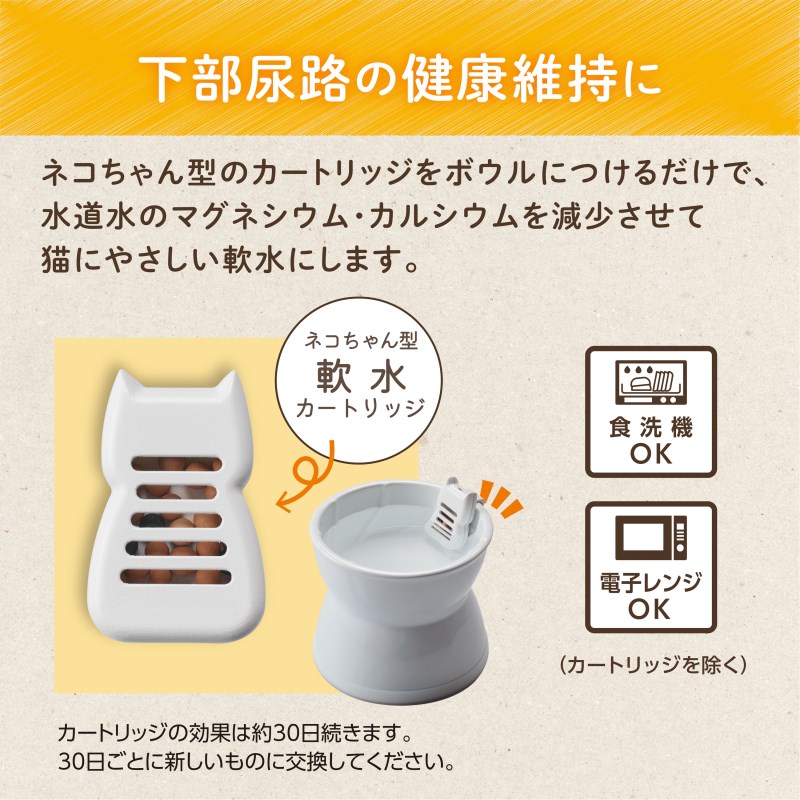 【取り付けるだけで簡単!】ネコちゃん型のカートリッジをボウルにつけるだけで、