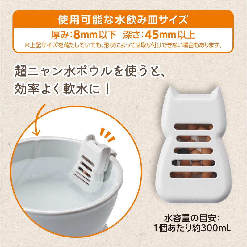 超ニャン水ボウルやお皿に取り付けるだけ、ピタッと固定。