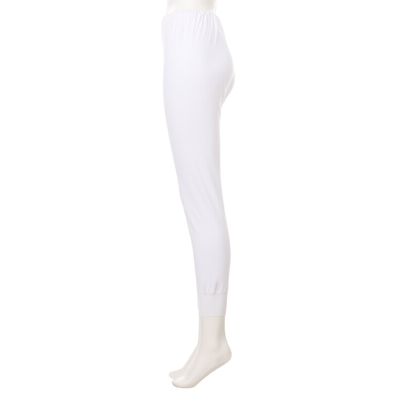 ボトムにひびかない9分丈、さらに裾リブ切り替えで動いてもまくれにくいデザインです。