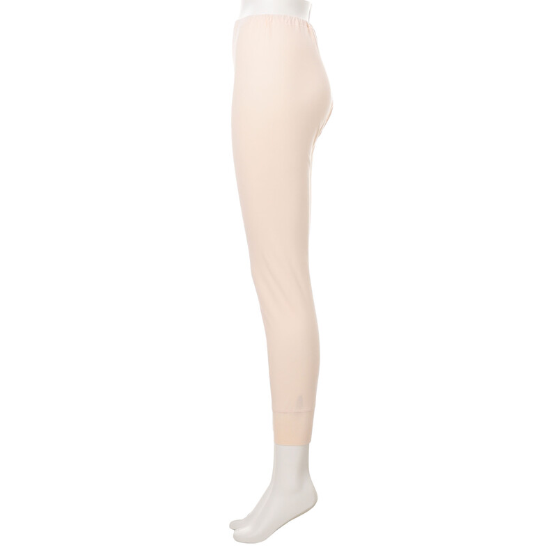 ボトムにひびかない9分丈、さらに裾リブ切り替えで動いてもまくれにくいデザインです。