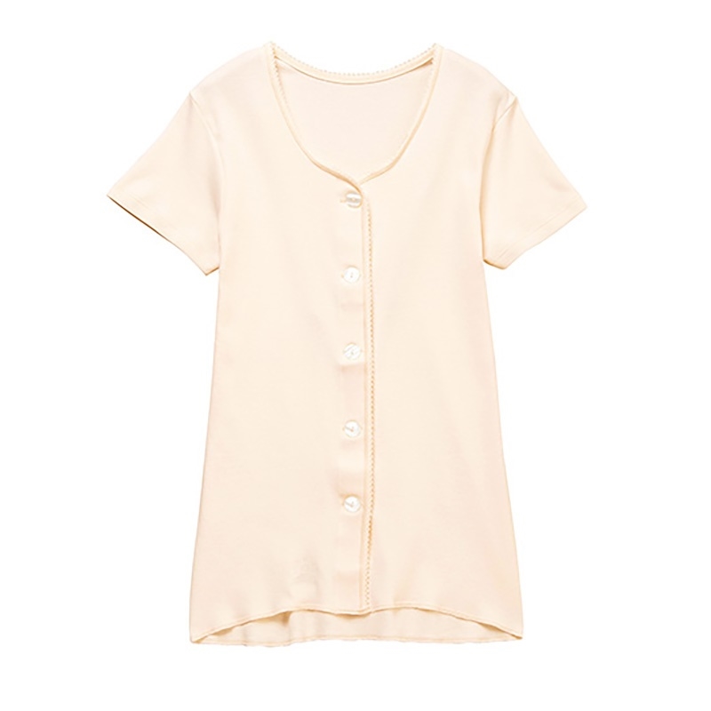 やわらかいスムース編み、肌側マイクロ起毛でやさしい肌あたり。