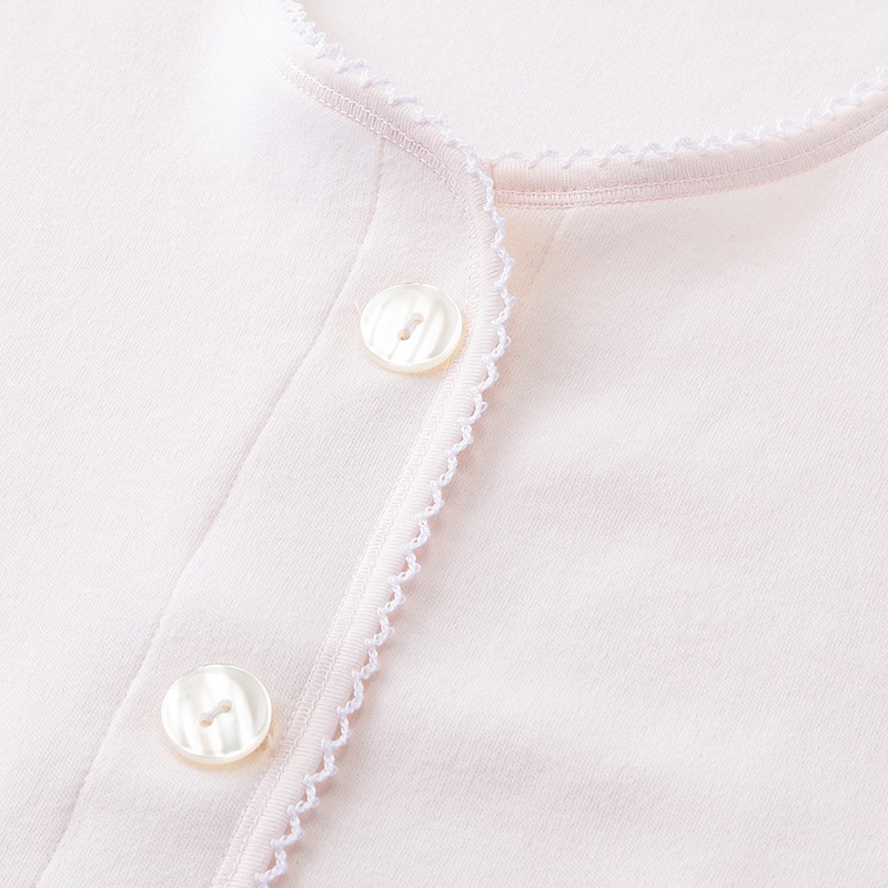 やわらかいスムース編み、肌側マイクロ起毛でやさしい肌あたり。