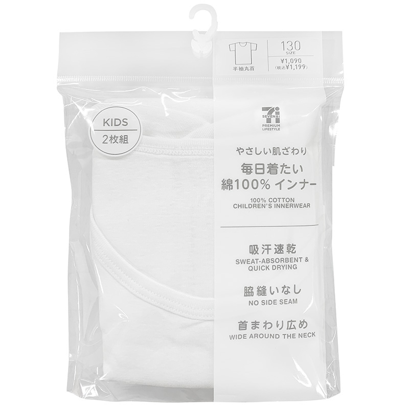 【セブンプレミアムライフスタイル キッズ 2枚組 半袖丸首シャツ】