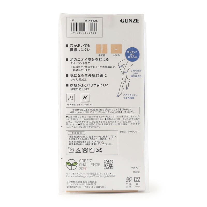 足のニオイ成分を抑えてくれるデオドラント加工、UV対策や静電気防止もプラスした実用派アイテム。