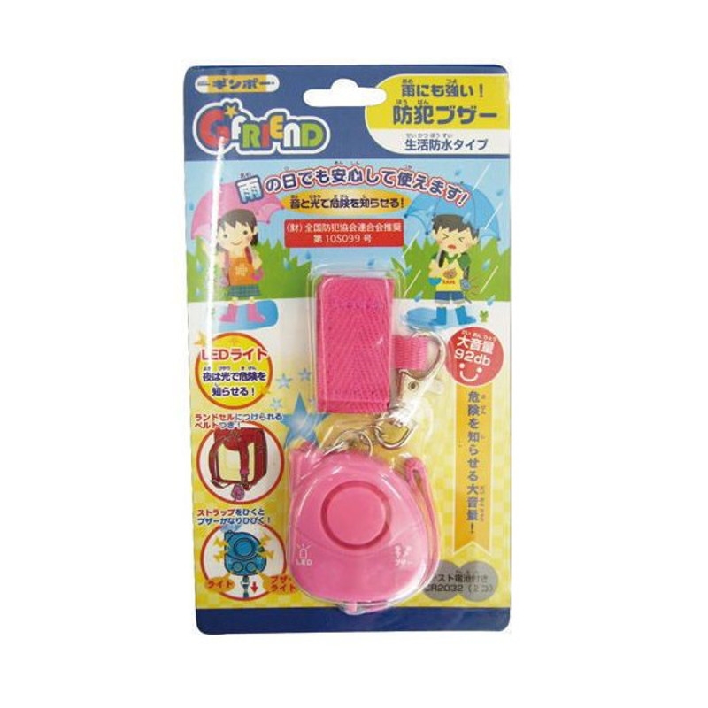 LEDライト点灯と92dbの大きな警報音で危険を知らせる防犯ブザー。防滴仕様なので雨の日でも安心して使えます。