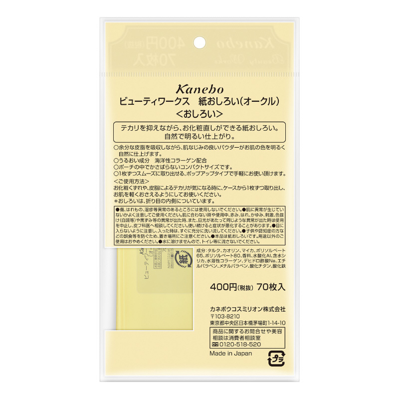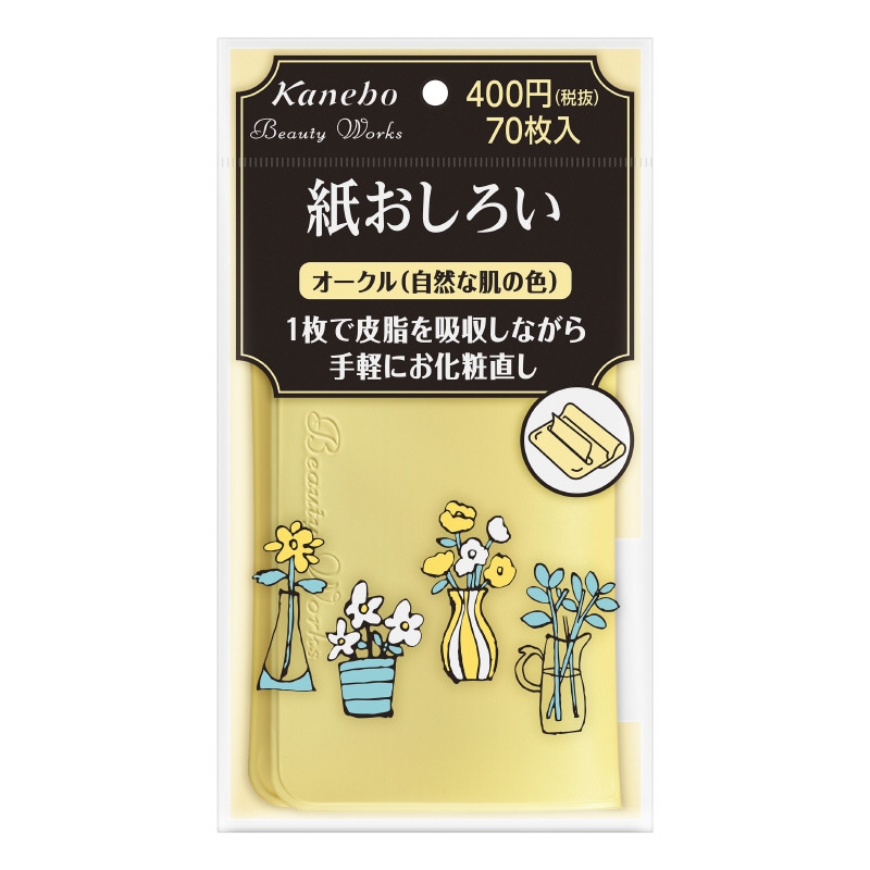 テカリを抑えながら、お化粧直しができる紙おしろい。自然で明るい仕上がり。