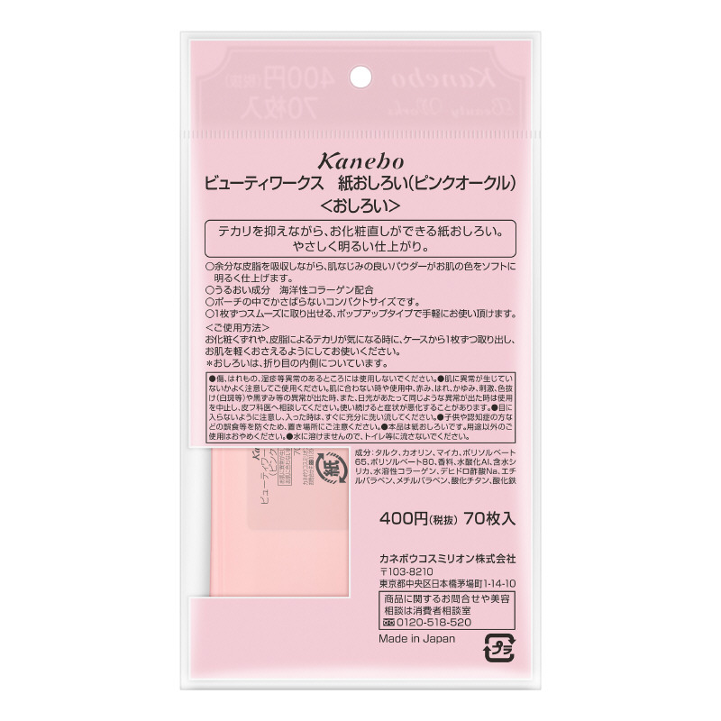 テカリを抑えながら、お化粧直しができる紙おしろい。自然で明るい仕上がり。