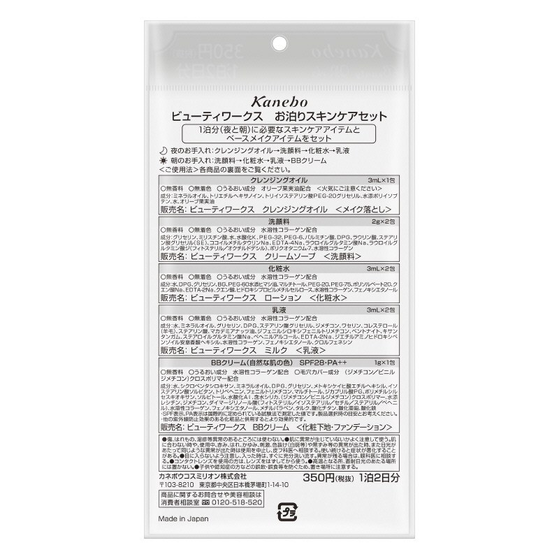 1泊分(朝と夜)に必要なスキンケアアイテムとベースメイクアイテムをセット