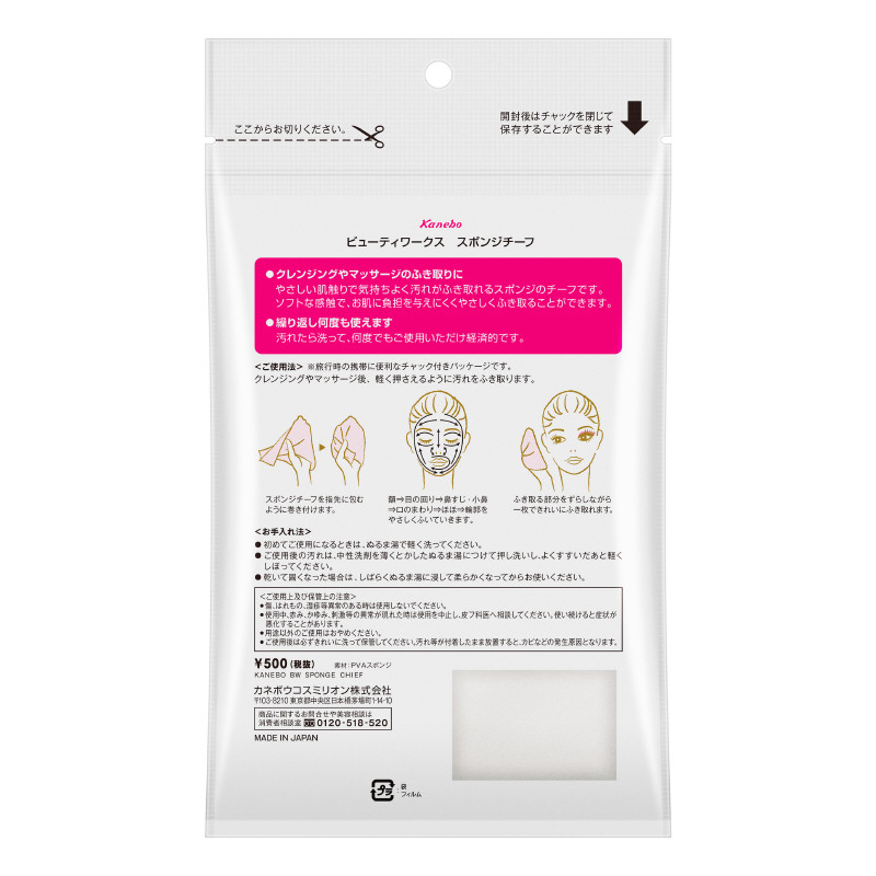 肌の弱いかたでも使えるソフトな感触のスポンジタイプのふき取りチーフ