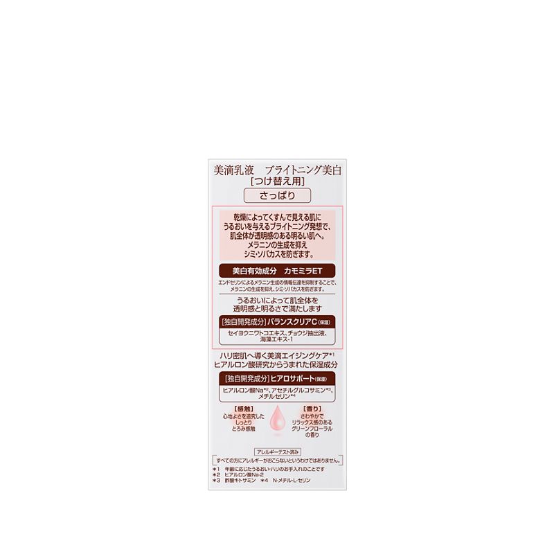 うるおって透明感のある肌へ導く美白乳液。メラニンの生成を抑えシミ・ソバカスを防ぐ。(医薬部外品)