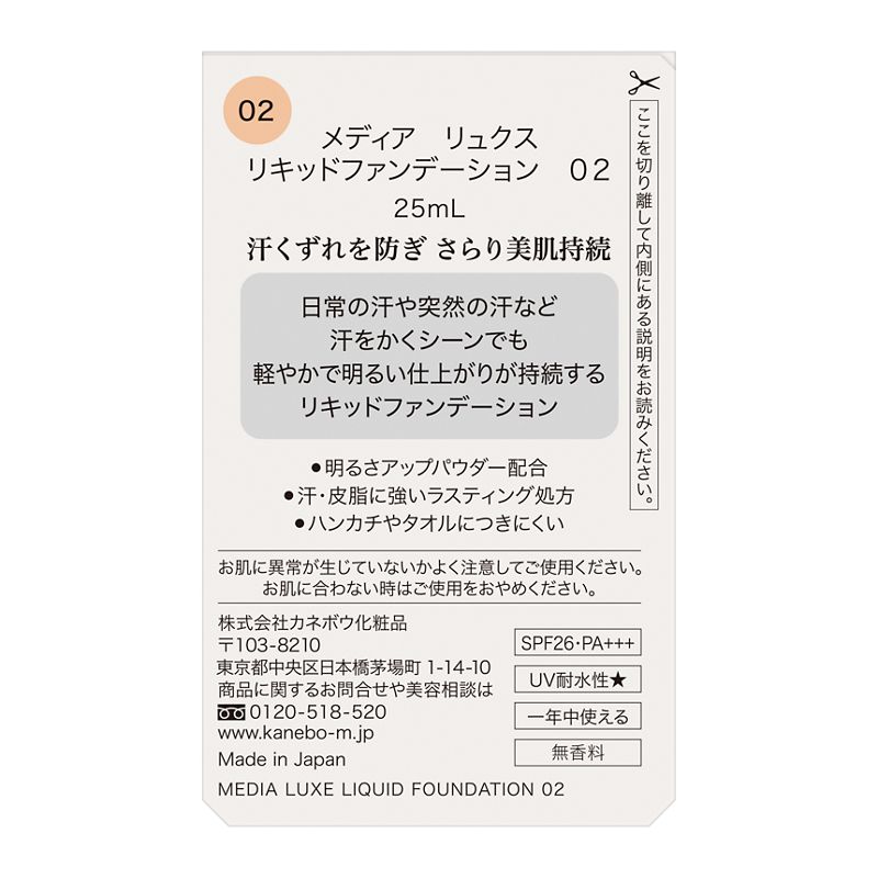 汗・皮脂に強いラスティング処方でファンデーションの崩れを防ぐ、動きに強い柔軟な化粧膜で美しい仕上がりが持続。