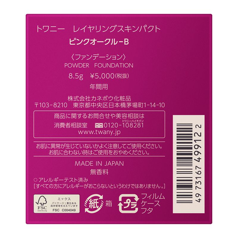 トワニー リズムカラーウェア等、他のベースメイクアイテムと重ねても心地よい美しい仕上がりです。