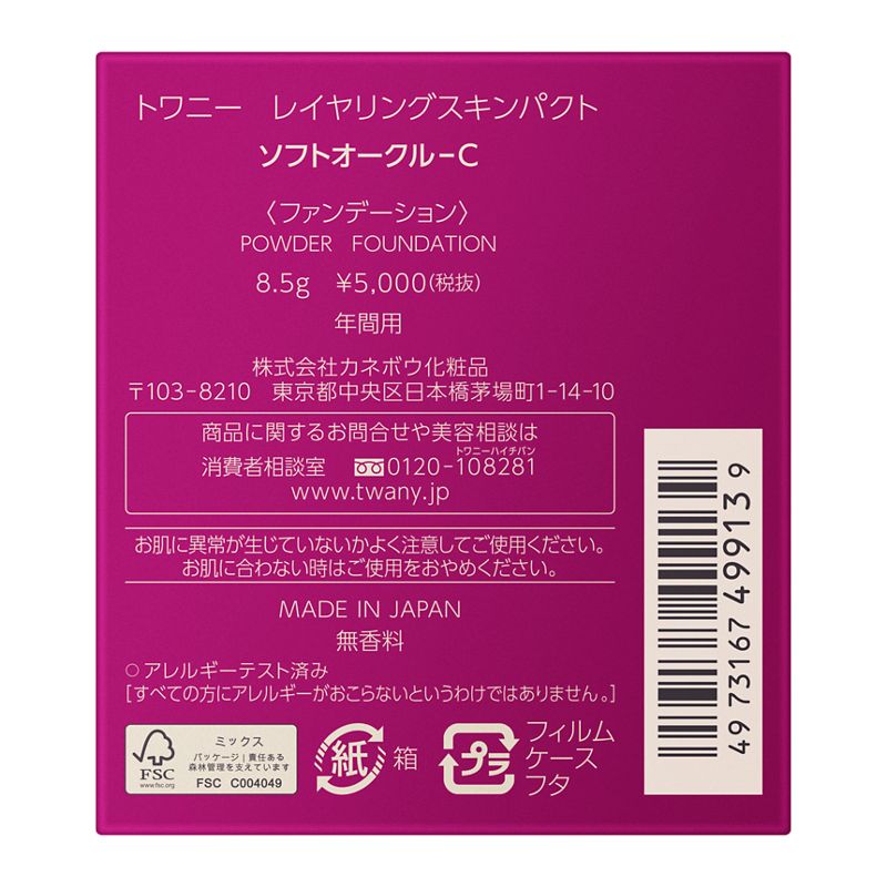 トワニー リズムカラーウェア等、他のベースメイクアイテムと重ねても心地よい美しい仕上がりです。