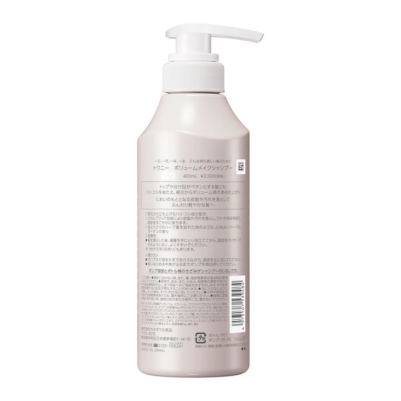 根元から立ち上げるハリ・コシ成分配合。スカルプクリア技術により皮脂や汚れを落とし、