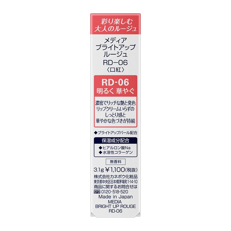 ひとぬりで つややか美発色。濃密でリッチな艶と発色で顔全体の印象を明るく見せる、肌映えルージュ。