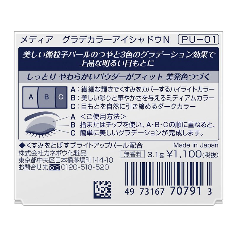 美しい微粒子パールのつやと3色のグラデーション効果で上品な明るい目もとに。