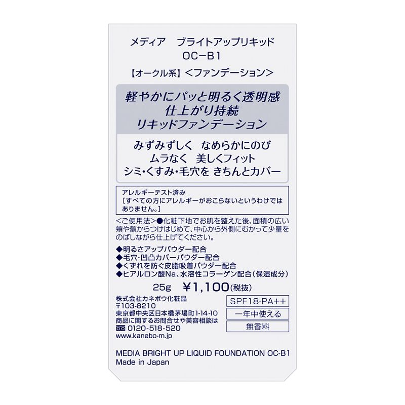 軽やかにパッと明るく透明感のある仕上がりが続くリキッドファンデーションです。