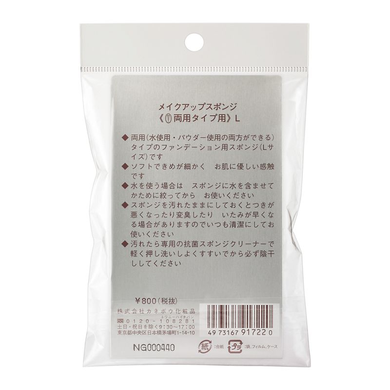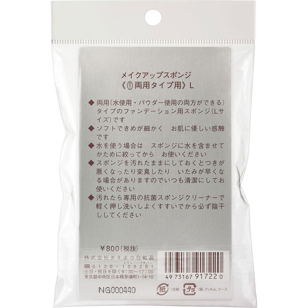 両用(水使用・パウダー使用の両方ができる)タイプのファンデーション用スポンジ(Lサイズ)です。